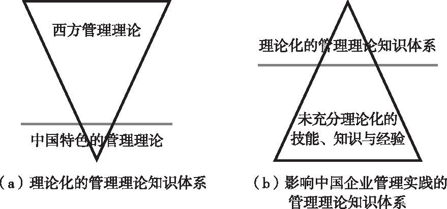 在中国管理学知识体系为西学所主导的被动局面下,中国管理学术界需要正视一个重要问题:繁荣的中国企业管理实践,为什么没有催生有影响力的中国企业管理理论?陆亚东(2015)[7]称之为“中国管理学理论研究的窘境”:尽管中国经济发展成绩斐然,其丰富的企业管理实践和悠久的管理哲学传统对全球管理理论的贡献,却与其经济表现极不相称。有一种流行的解释是,中国没有形成自己的管理理论,中国企业用的是西方管理理论。这一流行解释包含了两个观点:第一,现有的现代管理学知识体系主要由西方管理理论构成,中国特色的管理理论在其中占比甚小。此观点描述了基本的事实。第二,由于中国管理理论匮乏,指导中国企业管理实践的是西方管理理论。此观点作为一种流行解释,比较容易为人们所理解和接受,也有助于凸显加快发展中国管理理论的重要性,但它没有准确反映中国企业管理实践的真实状态,也没有深刻揭示出当下发展中国管理理论所面临的真切问题。